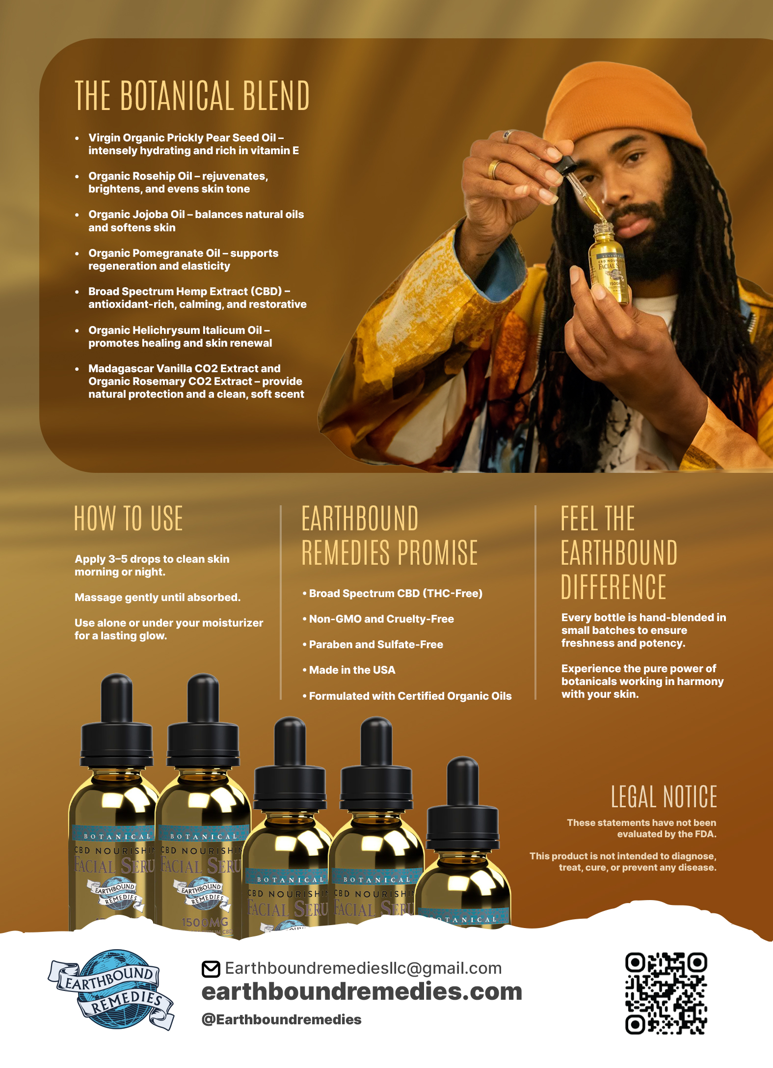 Ingredients: Virgin Organic Prickly Pear Seed Oil, Organic Rosehip Oil, Organic Jojoba Oil, Organic Pomegranate Oil, Full Spectrum Hemp Extract, Organic Helichrysum Italicum Oil, Madagascar Vanilla CO2 Extract and Organic Rosemary CO2 Extract.