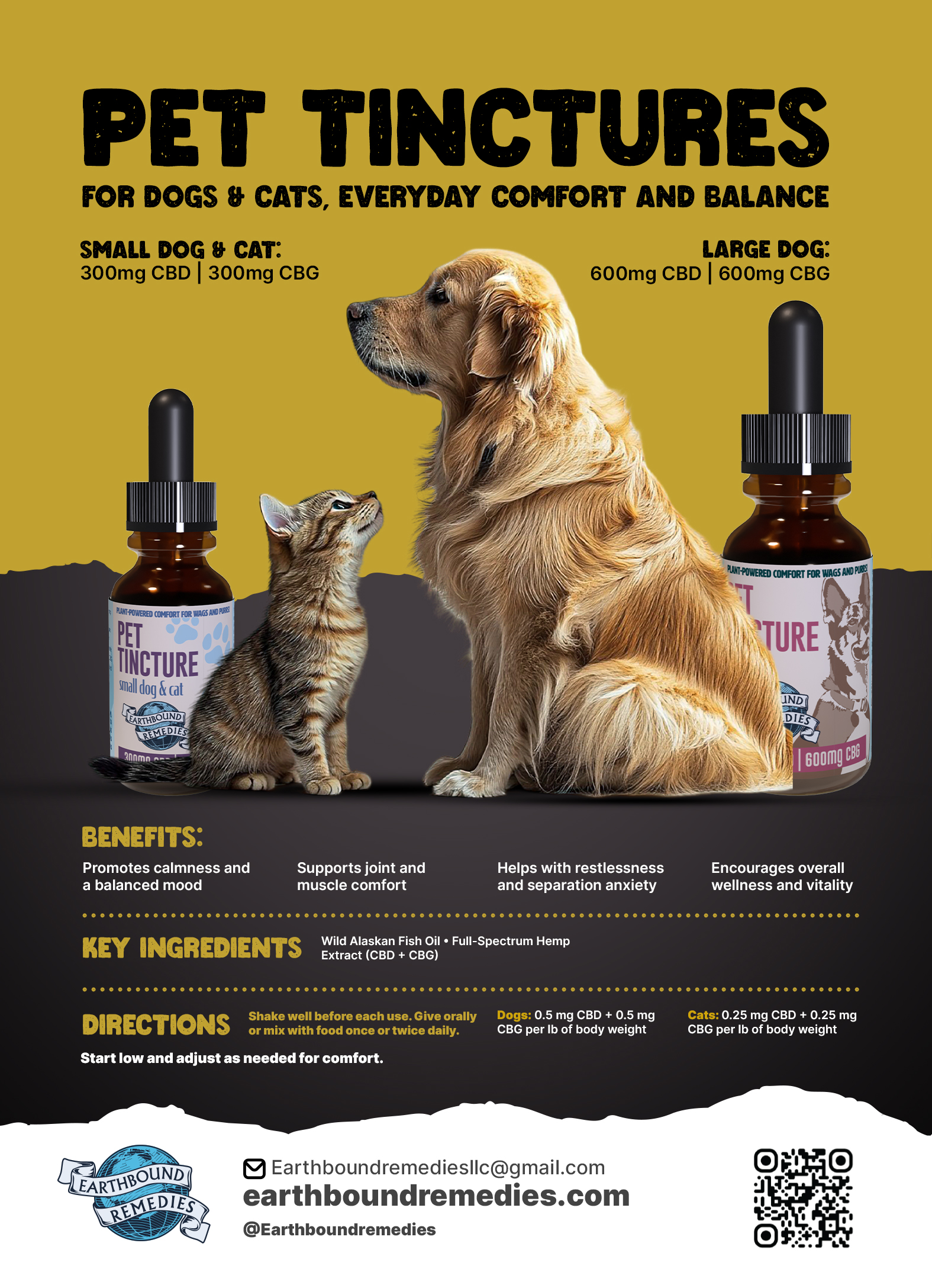 300mg of CBD & 300mg of CBG extracted from organic hemp, suspended in Wild Alaskan fish oil. 30ml.